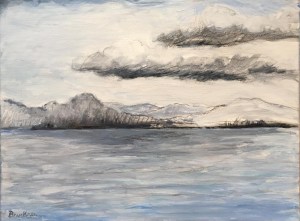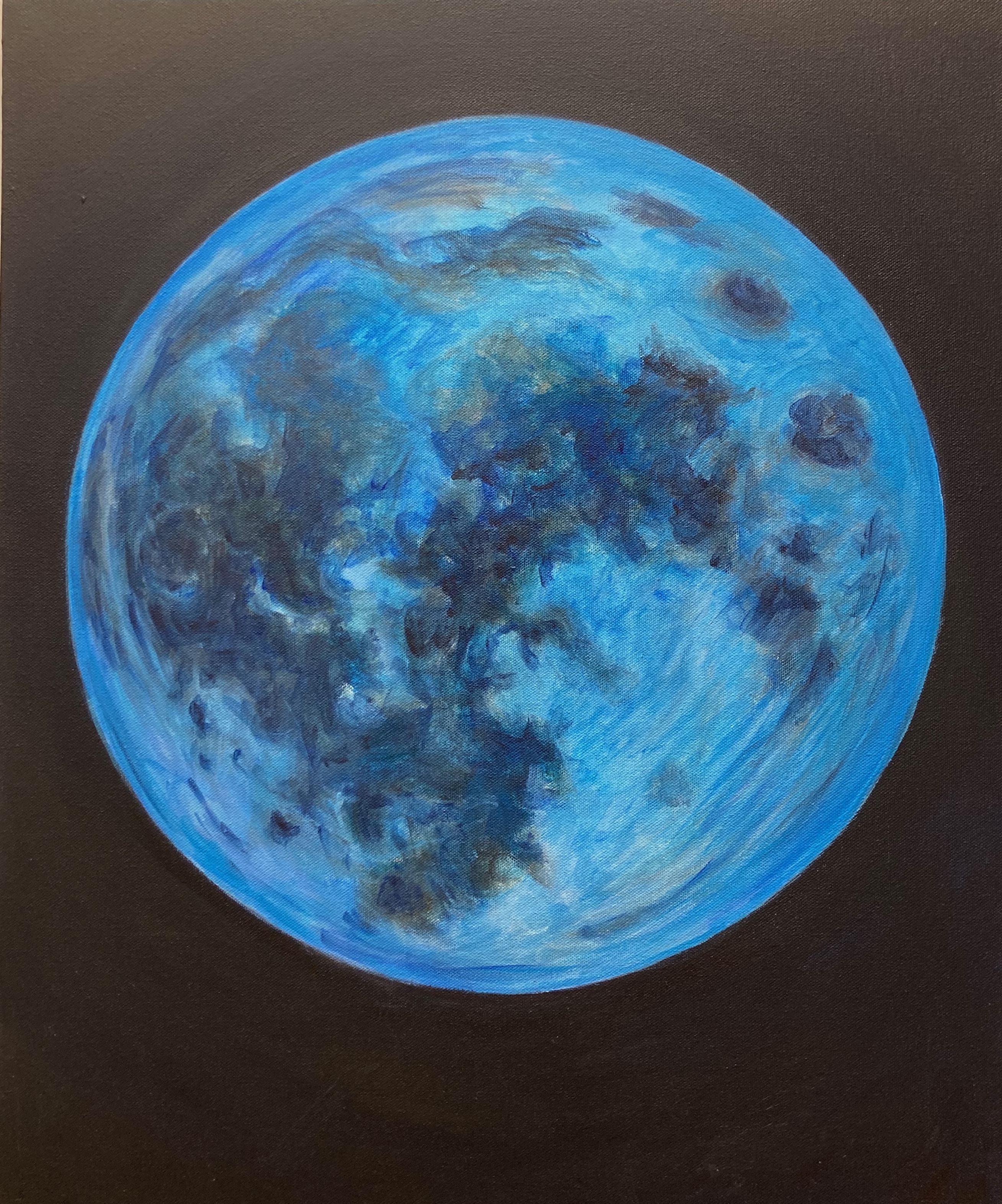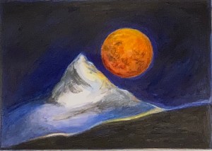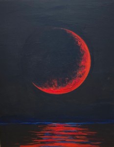 These works on canvas, board and paper have been inspired by a range of celestial events, seas, and mountains viewed and imagined. They include blood moons, solar and lunar eclipses, and moon rises. I am especially captivated by the expanse of the ocean, and the ever-changing interplay of sky and water.