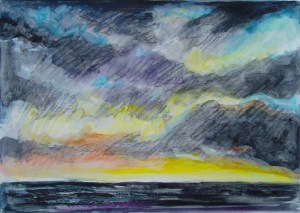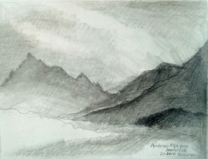 Some of these were done while looking across the Columbia River in Astoria Oregon, or sitting by the Pacific Ocean in Northern California; others while hiking in the Austrian and Swiss Alps.